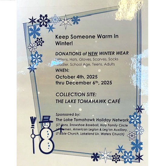 Notice is hereby given that on Wednesday, November 12, 2025 at 6:30pm in Raymond F Sloan Community Center a PUBLIC HEARING on the Proposed 2026 Budget of the Town of Lake Tomahawk, Oneida County will be held.